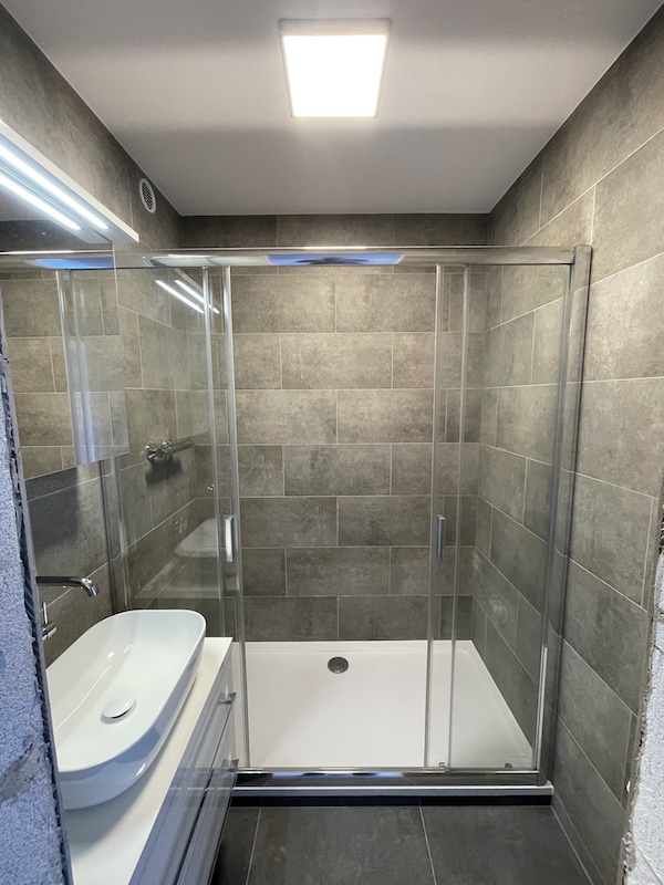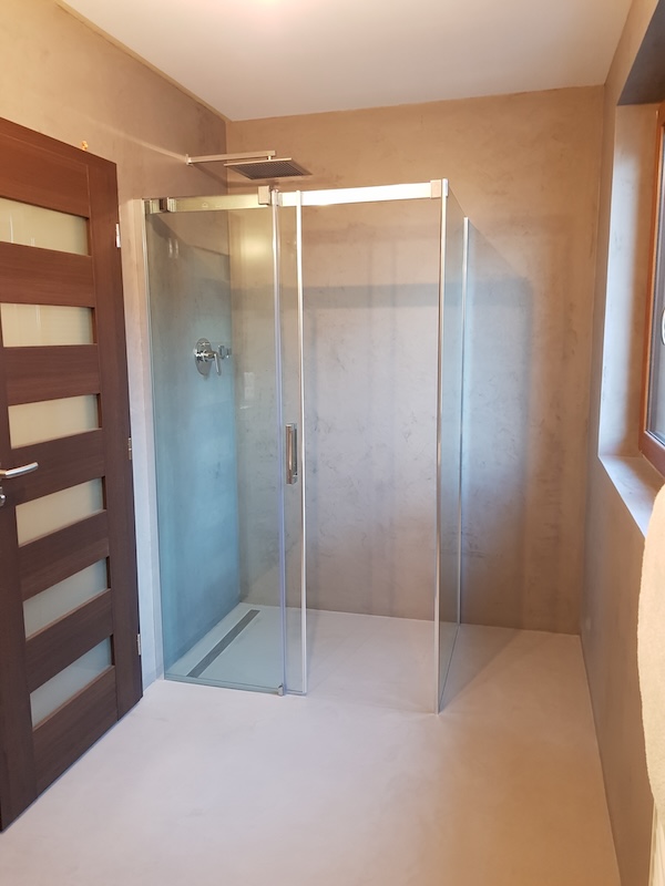 koupelna je kompletně v designové stěrce včetne celé podlahy.