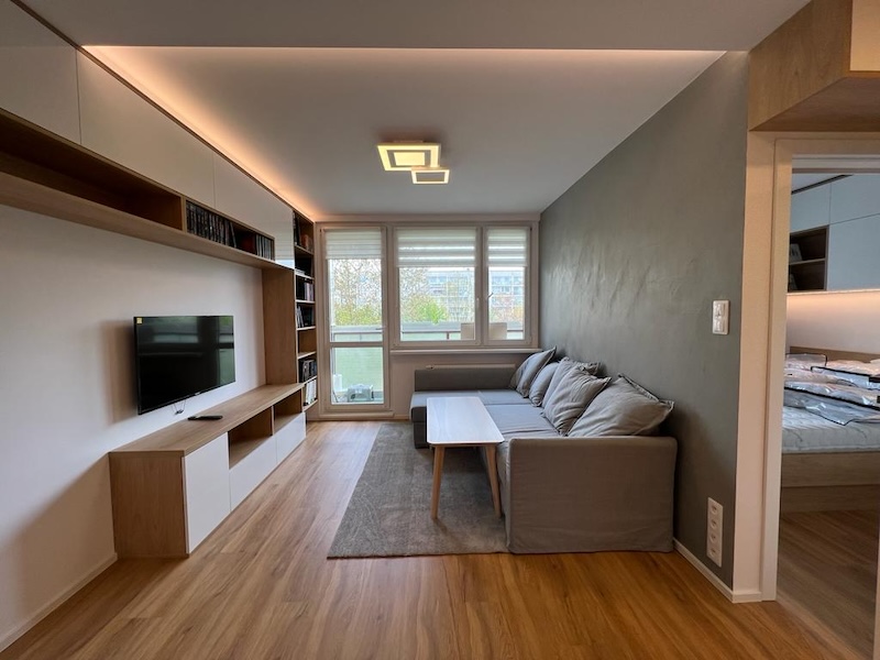 Kompletní rekonstrukce panelákového bytu, kde se měnila celá dispozice bytu. Praha Stodůlky