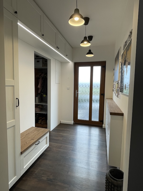 Montáž IKEA nábytku a světel s vytvořením dubových povrchů a zafrézováním led pásku na míru.